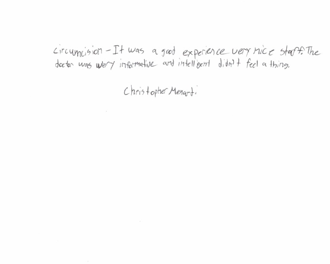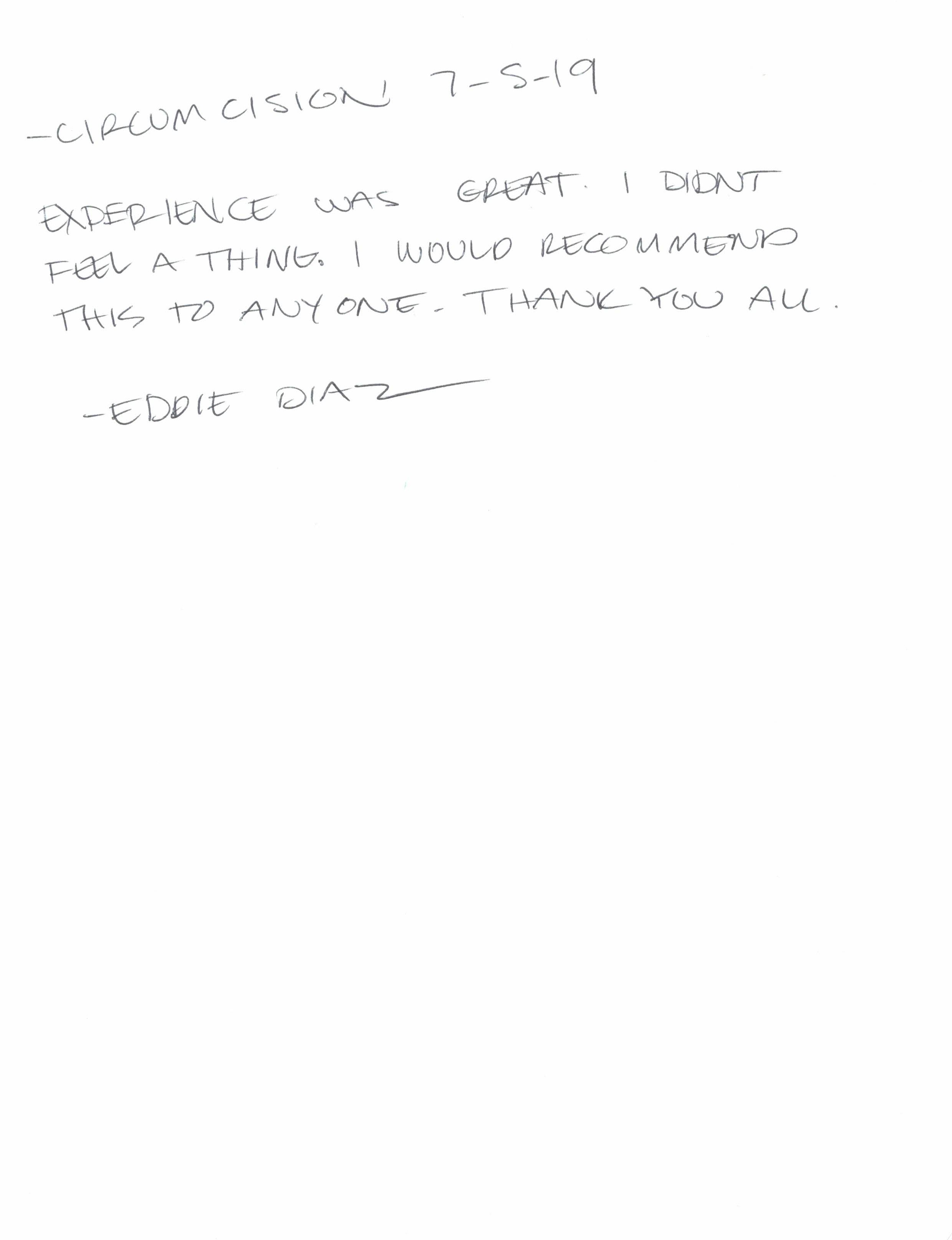 Thank you for the great experience. I was very afraid before surgery. I wanted to done circumcision for many years but everywhere I called all wanted so much money and to do procedure under local anesthesia.
